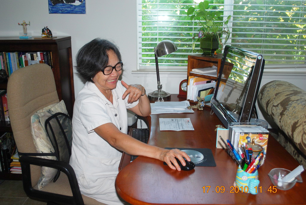 Ở cơ quan, lúc nhớ quá, cô cũng tranh thủ vào Web THKT, nhưng chỉ