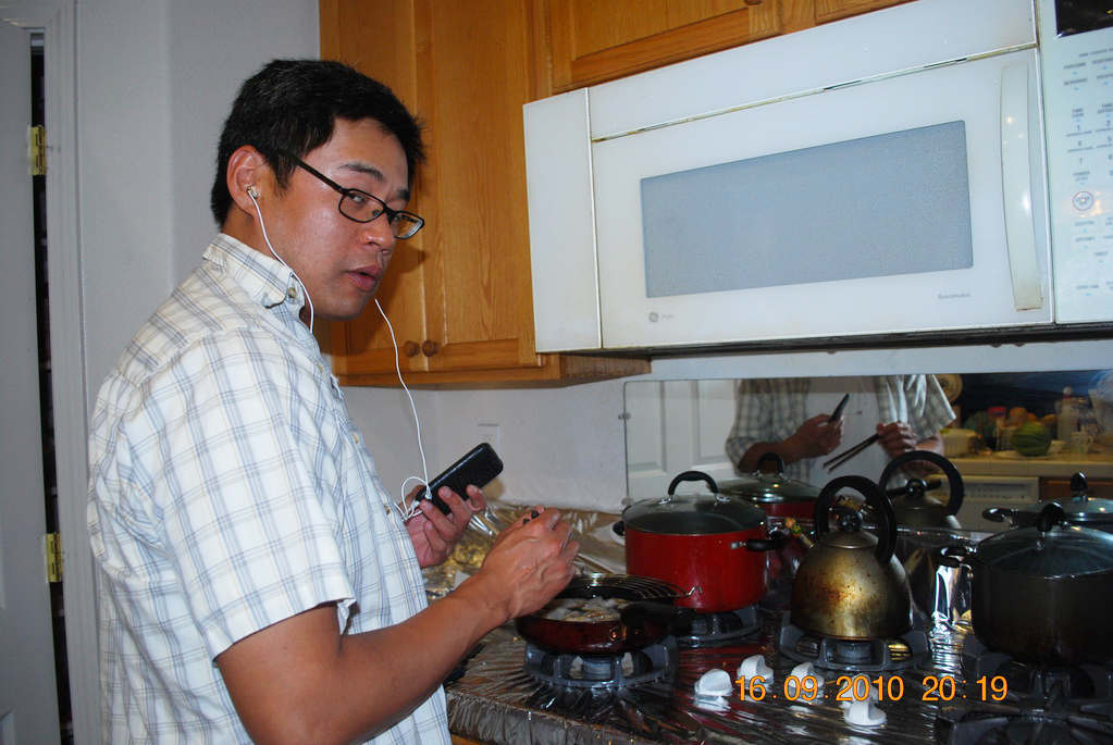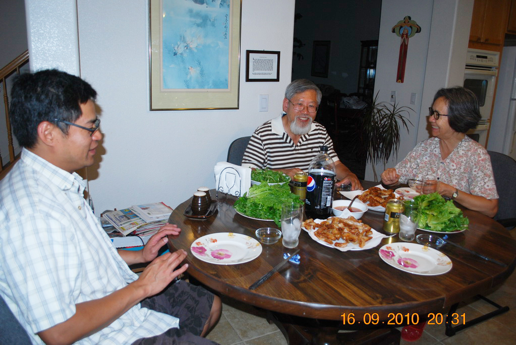 cơm gia đình của Đỗ Nguyễn Gia trang. Nhà có ba người. Hôm nay có học trò từ Việt Nam