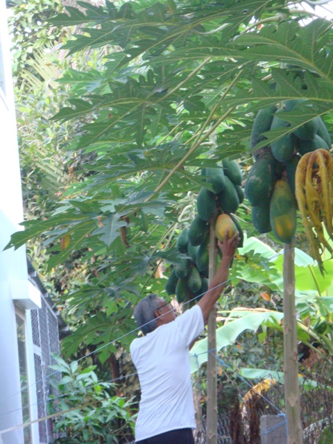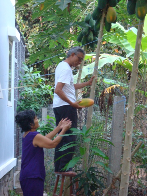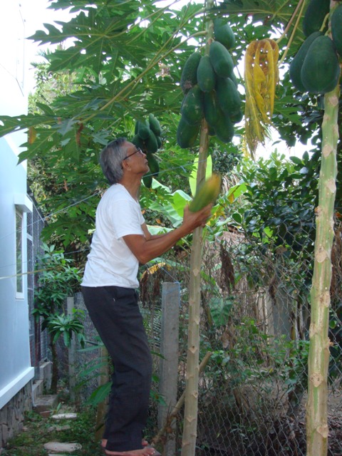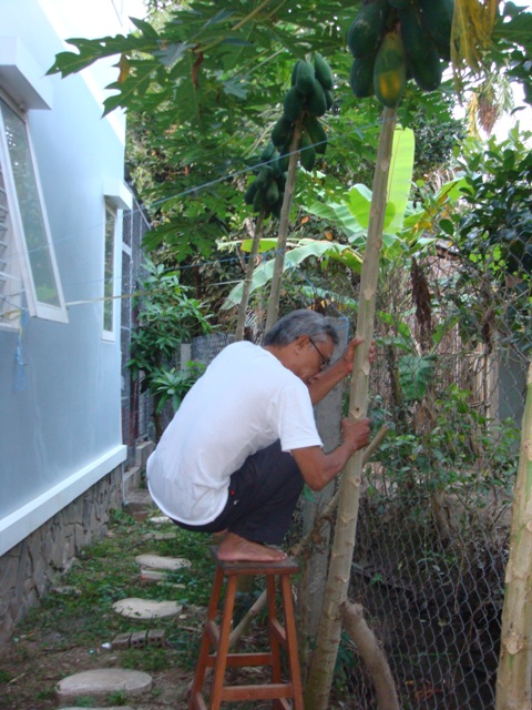 nay tình cờ em về nhà gặp lúc ba má em đang làm vườn, nên tranh thủ