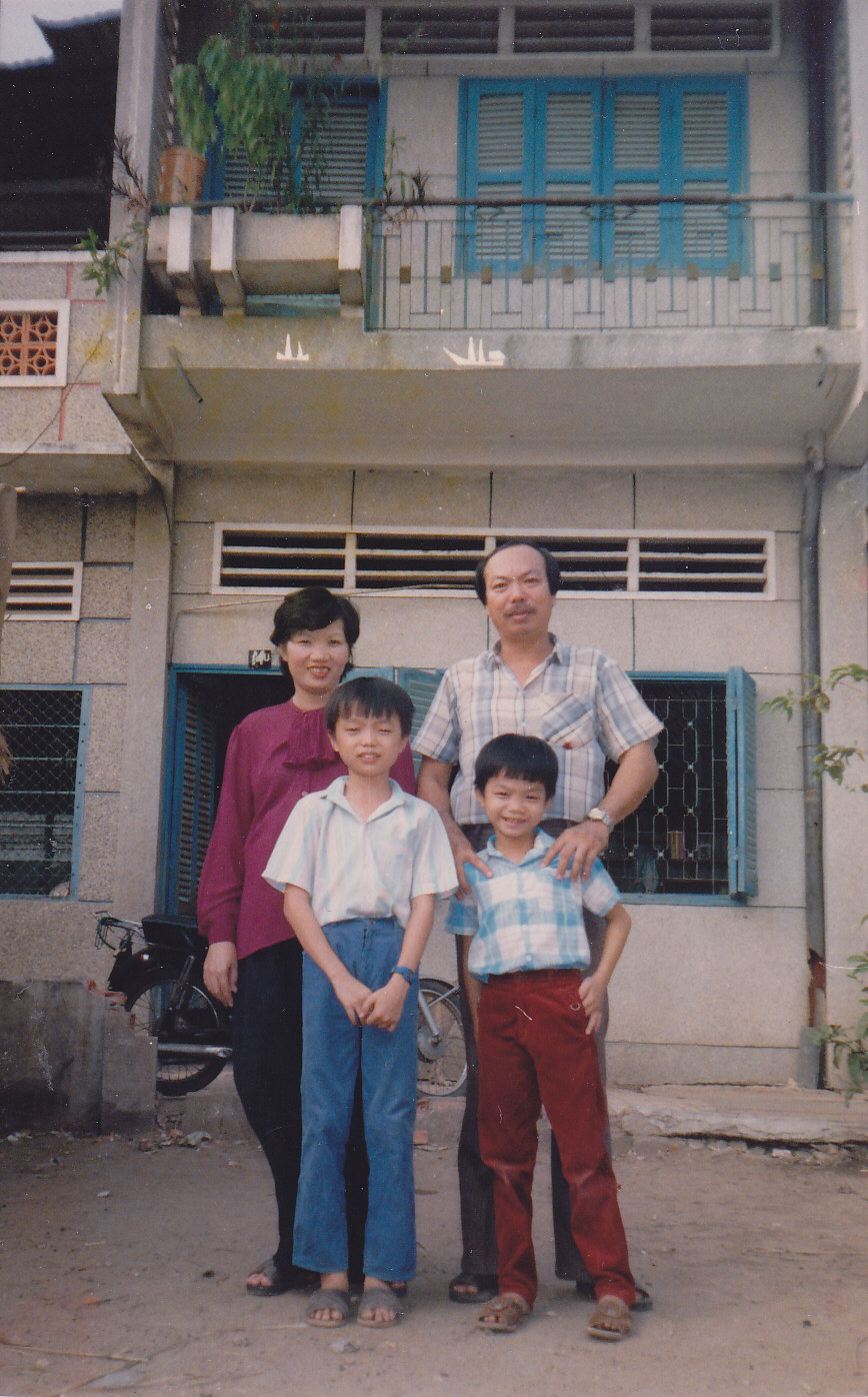 Thầy cô và hai con trai đầu tiên trước ngôi nhà tại Phú Bình (Q.11,