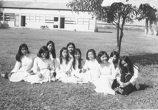 sinh ngữ Pháp văn). Chúng tôi xúng xính với bộ đồ dài trắng đến lớp