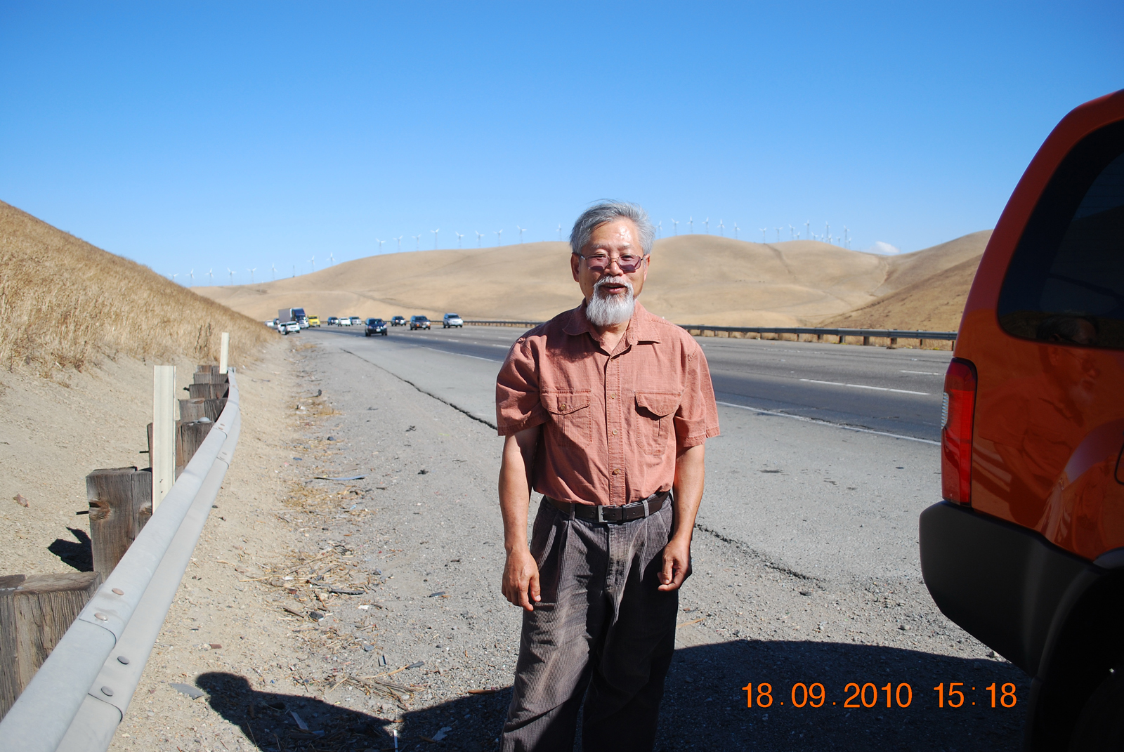 Thầy Đỗ Ngọc Trang bên xa lộ bang California, từ Sacramento đi