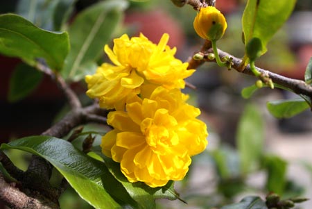 nhiên hình thức của hoa mai có khác đôi chút ở chỗ cánh hoa bẹt hoặc
