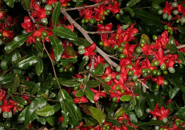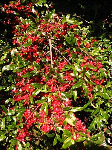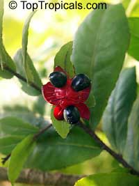hoa và ba hạt màu đen như hạt đậu. Năm cánh hoa màu đỏ cũng tròn
