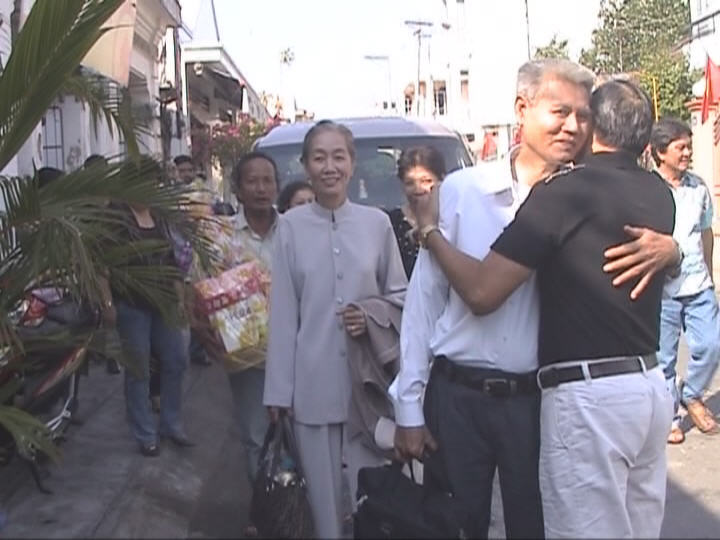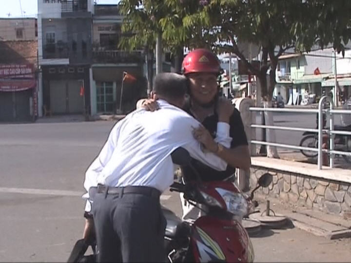 thầy lại tiếp tục ôm nhau trước cửa nhà thầy Phát.