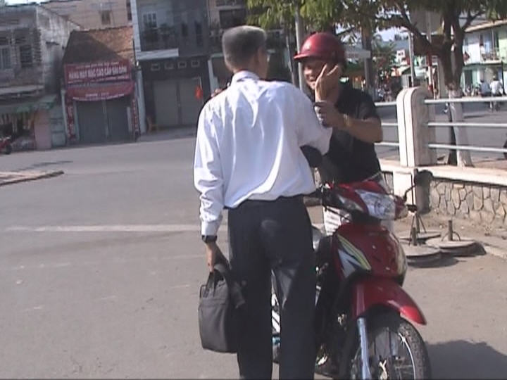 Trắc "áp giải" nhập đoàn tại Cai Lậy (Tiền Giang).