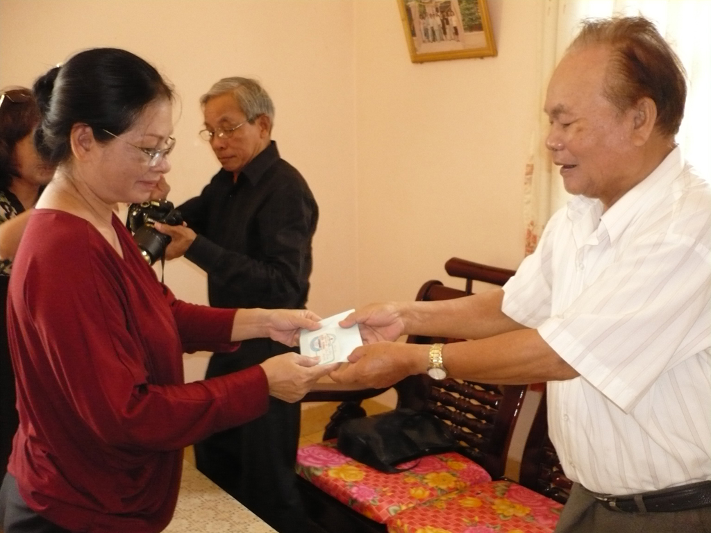 Cô Huỳnh Trung Dung đã thay mặt Gia đình THKT gửi tặng thầy chút quà