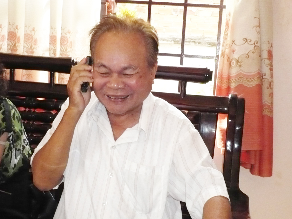 dẫn đường tới thăm thầy Nguyễn Tấn Trưởng. Thầy rất vui.