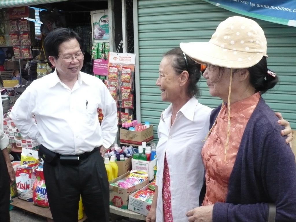 giữa) tại tiệm tạp hóa của bạn trong chợ Mộc Hóa.