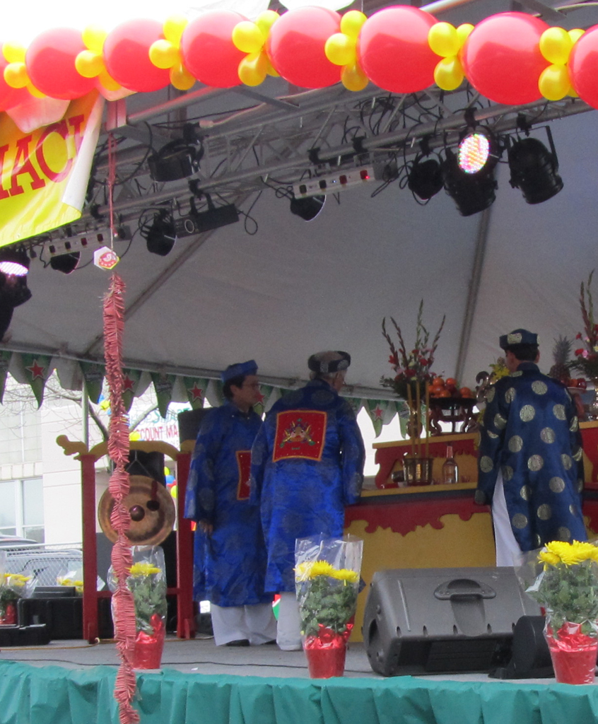 Trên sân khấu, tôi thấy 3 cụ có lẽ tượng trưng