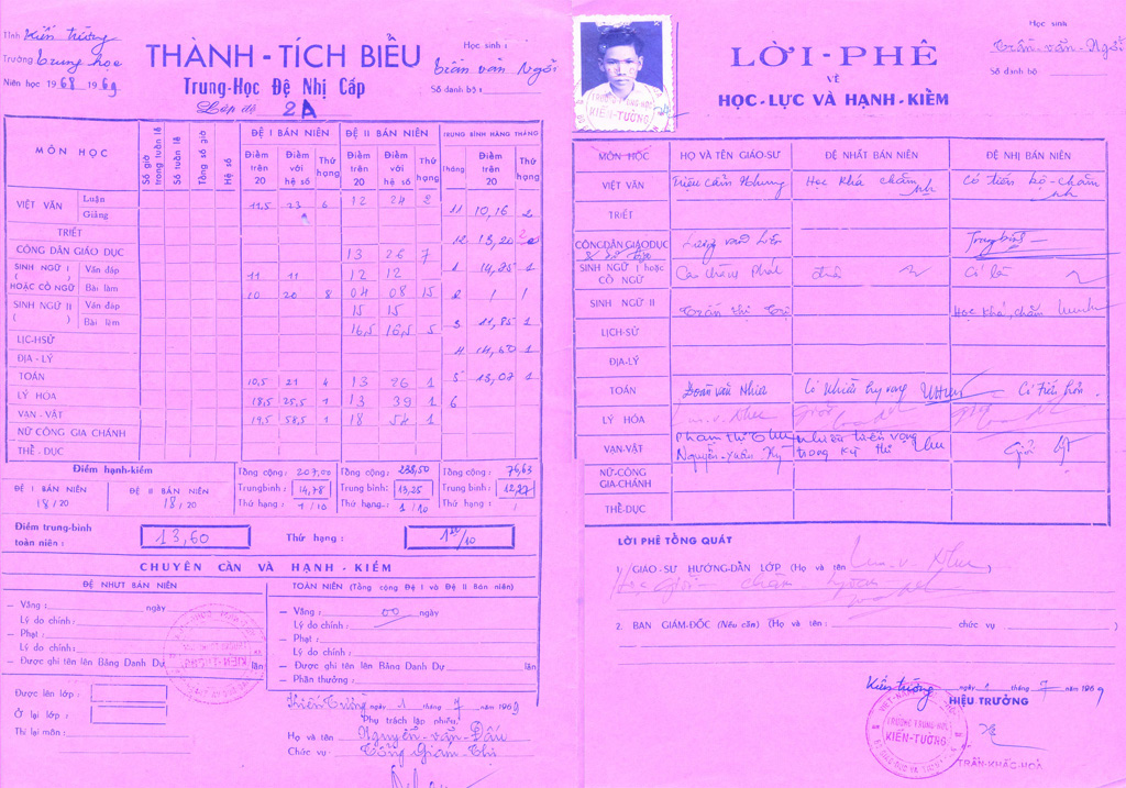 Thành tích biểu niên khóa 1968-1969: