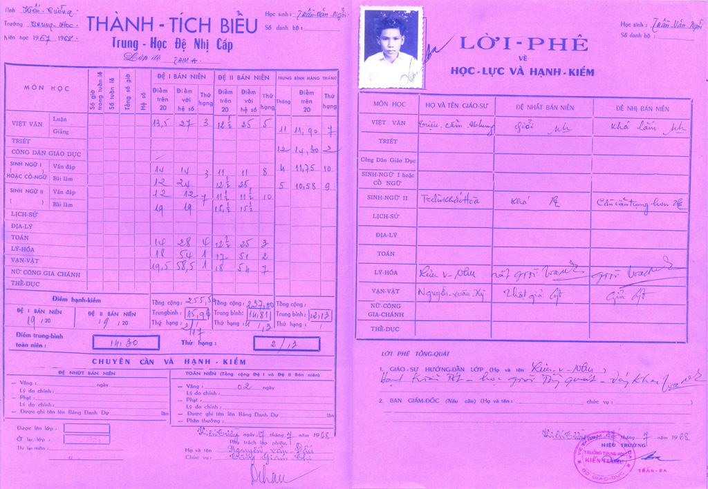 Thành tích biểu niên khóa 1967-1968: