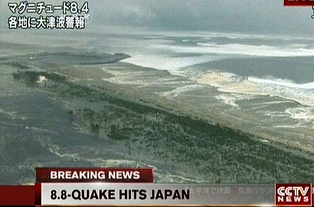 mạnh 8,9 độ Richter trước đó ít lâu ngoài khơi thành phố Sendai,