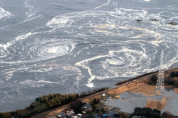 Water swirls off the coast of Fukushima